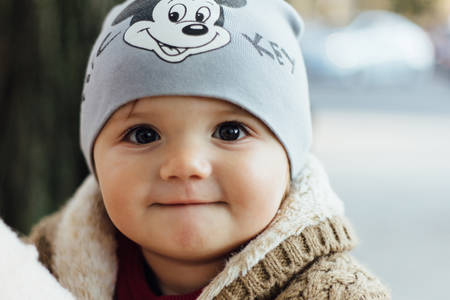 Adorable and cute face baby looking at camera. Close up image of an adorable little girl with blue eyes.