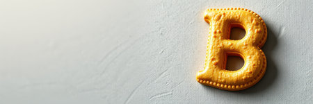 Golden letter B shaped cookie resting on a neutral surface during a casual baking session