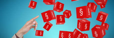 Businesswoman using imaginative digital screen against abstract blue background