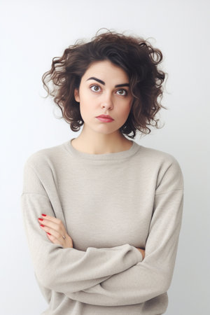 Portrait of a beautiful young woman with curly hair in a shirt.