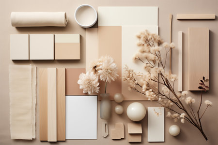 interior design moodboard - material collage, trend inspiration, natural materials, rose color tones - AI generated image