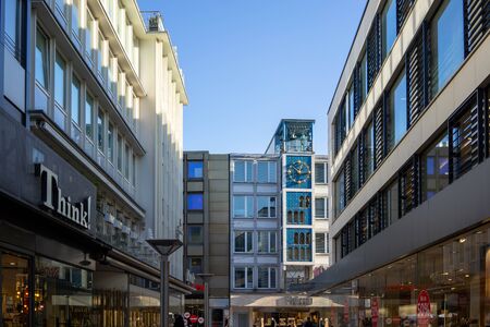 city and shopping streets around October 25, 2018 Dusseldorf, Germany. The theme of shopping in Europe. Central street with shops in Dusseldorf.