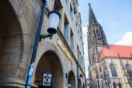 Muenster, Germany - September 25, 2016: Prinzipalmarkt in Muenster, with unidentified people. The Prinzipalmarkt is the historic principal marketplace of Muenster, shaped by historic buildings