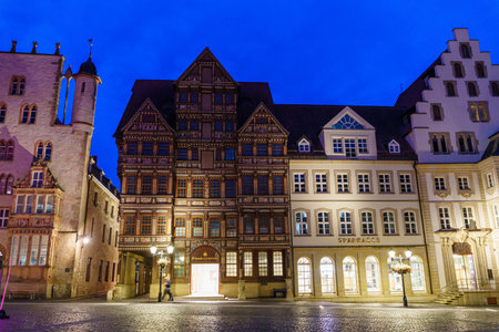 BIELEFELD, GERMANY. JUNE 12, 2021. Beautiful view to a Old market square. Cruewell house facade. Old traditional architecture