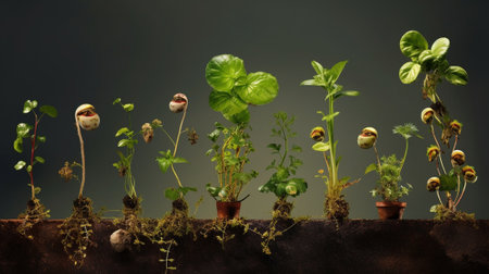 A line of young green seedlings stands in a neat row, each representing a step in a journey of development.