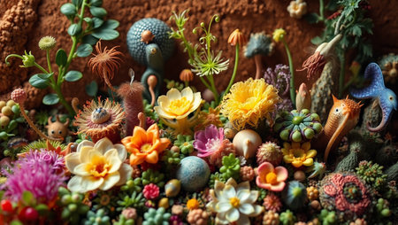 Vibrant assortment of flowers blooming in a garden filled with various hues and shapes, Diverse array of vibrant plants and flowers