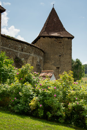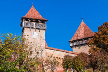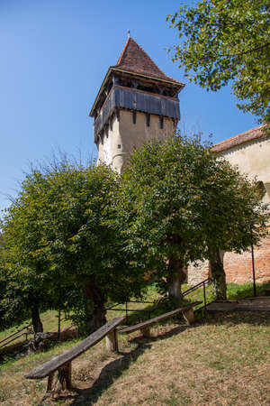 Transylvania medieval scenery with fortified churches. Alma Vii rural church was built in 16th century by saxons in gothic architecture style.