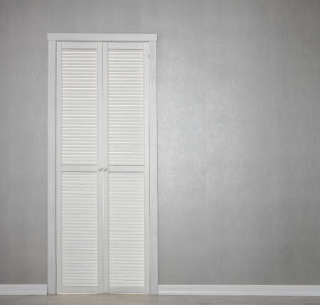 Light wooden sliding door with subtle grain texture, set into clean white wall