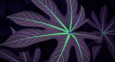 Close Up of Stunning Verdant Leaf, Showcasing Intricate Greenery Details Against Dark Background