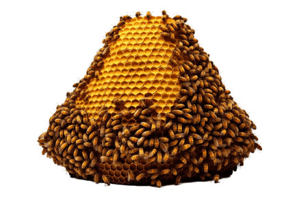 A close-up of a honeycomb structure showing the intricate patterns. Bees use these cells to store honey and pollen. AI generation