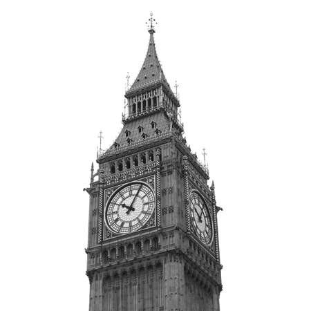 Black and white Big ben clock tower London, Westminster Abbey isolated