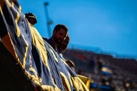 Miami, US, Dec. 23 2023: Copa America USA 2024 Flag waving on a clear day. International men soccer championship.The 2024 edition will be hosted by USA. Illustrative editorial 3d illustration render