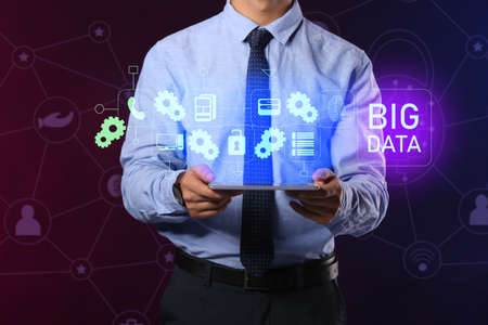 The big data modern computing concept with businessman