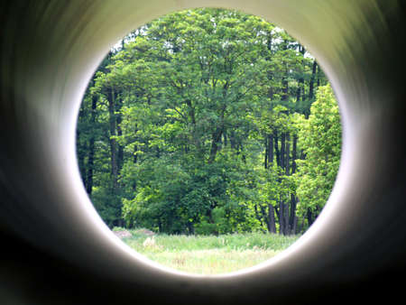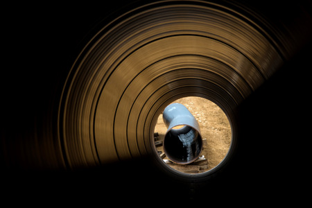 The tunnel cement pipe has black shadow and light at the end of the tunnel.