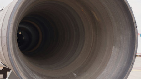 The ventilation pipe is round from the inside. Steel pipes, parts for the construction of industrial air conditioning ducts inside the pipe. Industrial ventilation equipment