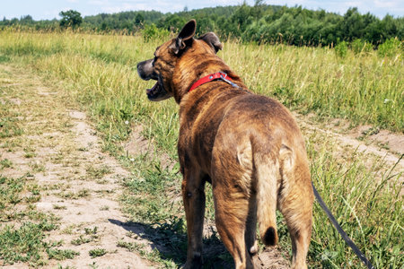 Angry dog. Stray dog grinds his teeth. Aggressive animal. Preparing for attack. Rabies in dog.