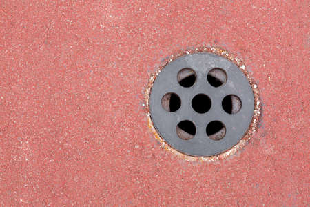 Water drain, metal part and red pavement texture.