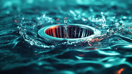 A close up of a drain with water running down it, AI