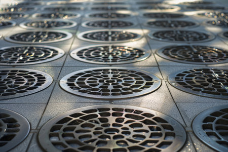 a Photo of a manhole cover made of steel In modern vintage style