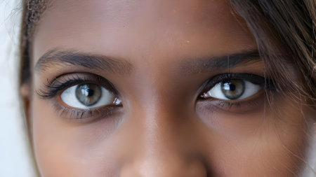 Close-up of a young woman's eyes looking at the camera. generated by AI