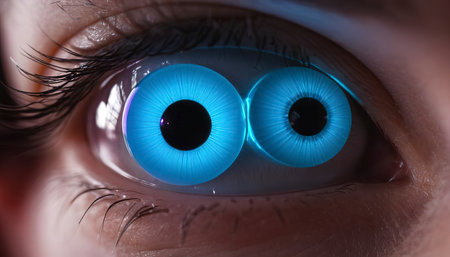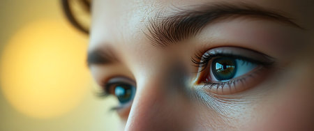 Intense macro shot of a person's eyes with detailed textures. Hyper-realistic close-up. Human emotion and vision concept. Design for health brochures, scientific presentations. Macro shot with high detail focus.