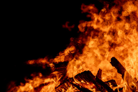 flames and fire released by a pyre for the traditional epiphany festival in Italy