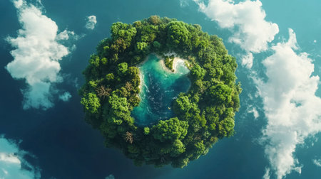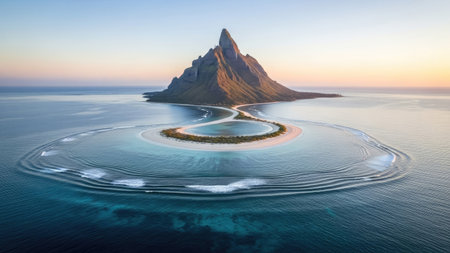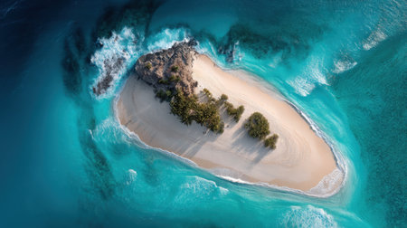 An aerial view of a small island in the middle of the ocean. AI generative image.