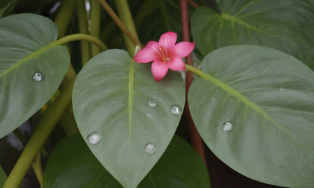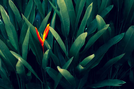 tropical leaves colorful flower on dark tropical foliage nature background dark green foliage nature