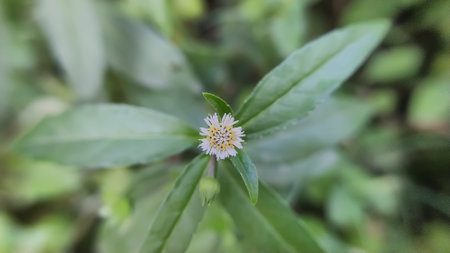 top view portrait of tropical exotic little flowers plants on summer time. Thailand Landscape Holiday travel