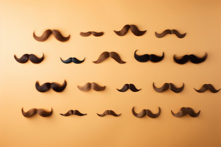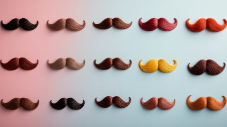 Artistic flat lay, rich color palette, mustache backdrop, extra space for text, 3D rendering