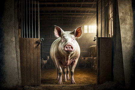 Pink pigs on the farm. Swine at the farm. Meat industry. Pig farming to meet the growing demand for meat