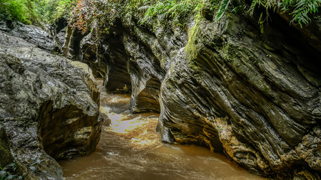 Stunningly beautiful original stone walls of the gorge Panta Vrexei in Evritaniia in Greece