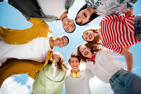 Young boys standing in a circle. View from below.