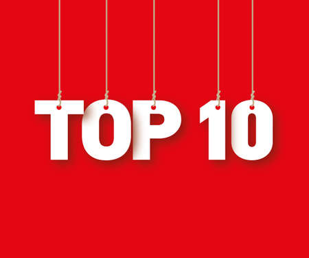 TOP 10 the word of the white letters hanging on the ropes on a red background