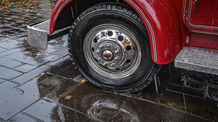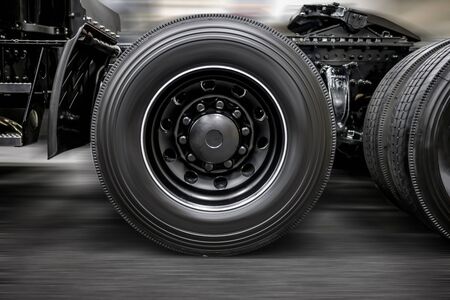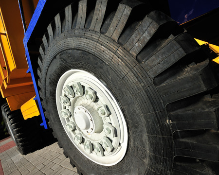 Photo of heavy cargo truck wheel close up