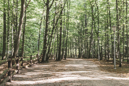 Forest trees. nature green wood sunlight backgrounds. Path in forest.
