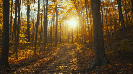 Captivating Autumn Pathway in the Woods. Generative AI