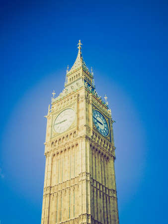 Vintage looking Big Ben at the Houses of Parliament aka Westminster Palace in London, UK