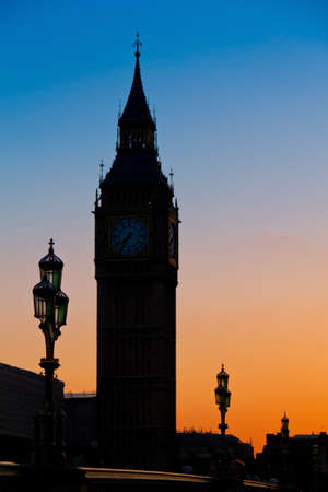 Sunset view of Big Ben and Westminster Bridge in London