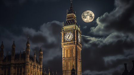 Generative AI : Big Ben and House of Parliament at Night London United Kingdom