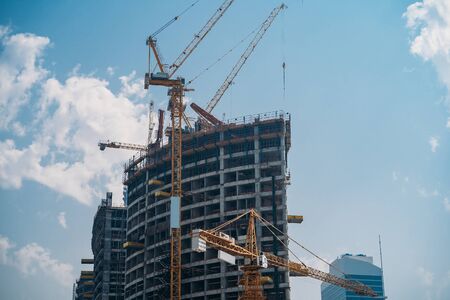 Modern construction site of skyscraper high rise building in Dubai. Urban development.