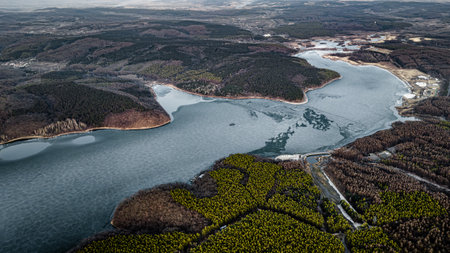 Panoramic view of lake Bukovec Kosice region, Slovakia in early spring. View from above