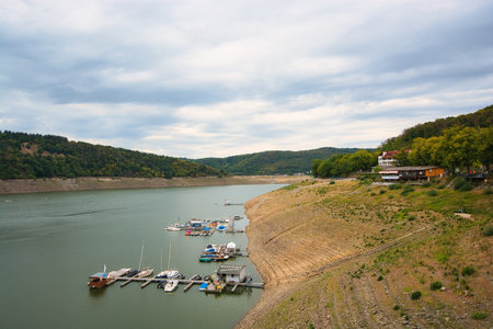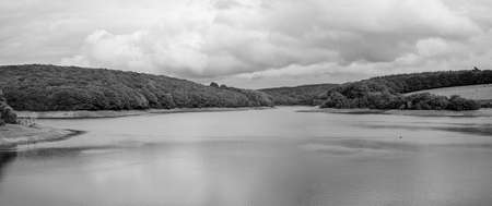 SUNDERN, GERMANY - OCTOBER 12, 2022: Panoramic image of Lake Sorpe close to Sundern on October 12, 2022 in Sauerland, Germany