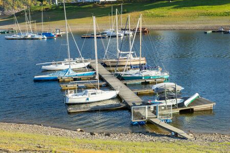 German lake called Edersse with landing platform for boats at autumn