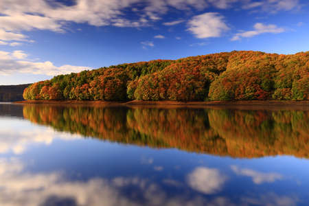 Rur Reservoir, Panoramic view of the Rur Lake in autumn, Germany