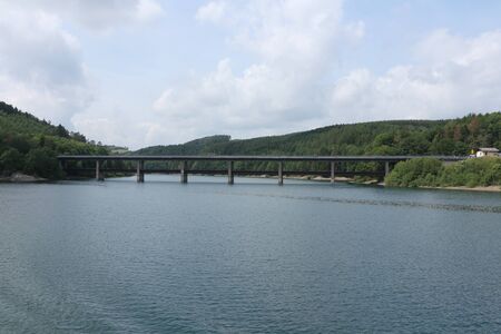 Edersee dam wall Germany in the sunset. clouds in the sky