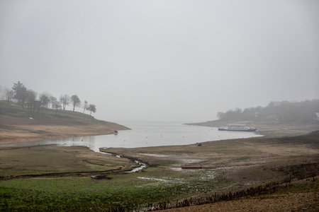 Lack of water in Lake Domaša Slovakia in winter with an exposed bottom