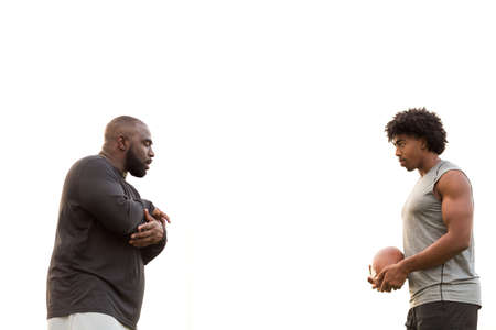 beaten man of color with fist in his face looking down white background - waist up shot. High-quality photo