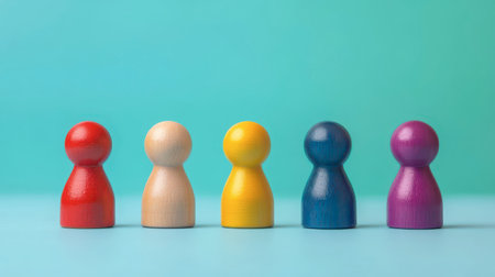 Colorful pawns on light blue background, closeup. social inclusion concept