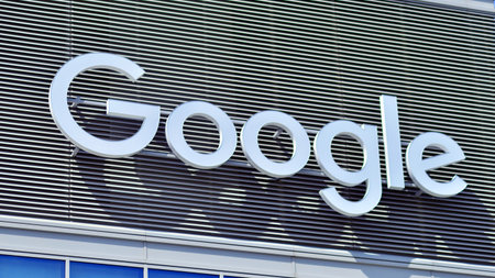 Warsaw, Poland. July 30, 2025. Urban landscape. Neon sign with the inscription: Google.